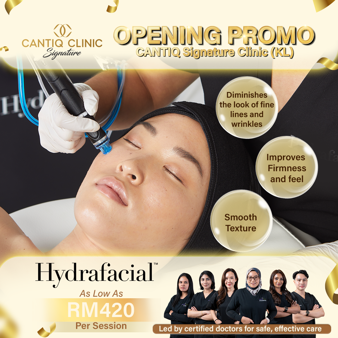 "I'm absolutely delighted with my visit to Cantiq Clinic, Klang branch! My sincerest gratitude to Ms. Redleaf and Ms. Atiqah for the exceptional treatment. My complexion feels thoroughly revitalized and deeply nourished, and I even perceive myself to be two years younger than my actual age! I profoundly appreciate their exemplary professionalism and unwavering genuine care. This clinic comes with my highest recommendation!